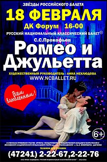 18 февраля главная сцена Губкина примет труппу Русского Национального классического балета. Зрители увидят старую как мир историю "Ромео и Джульетта". Начало в ЦКР "Форум" в 16.00.