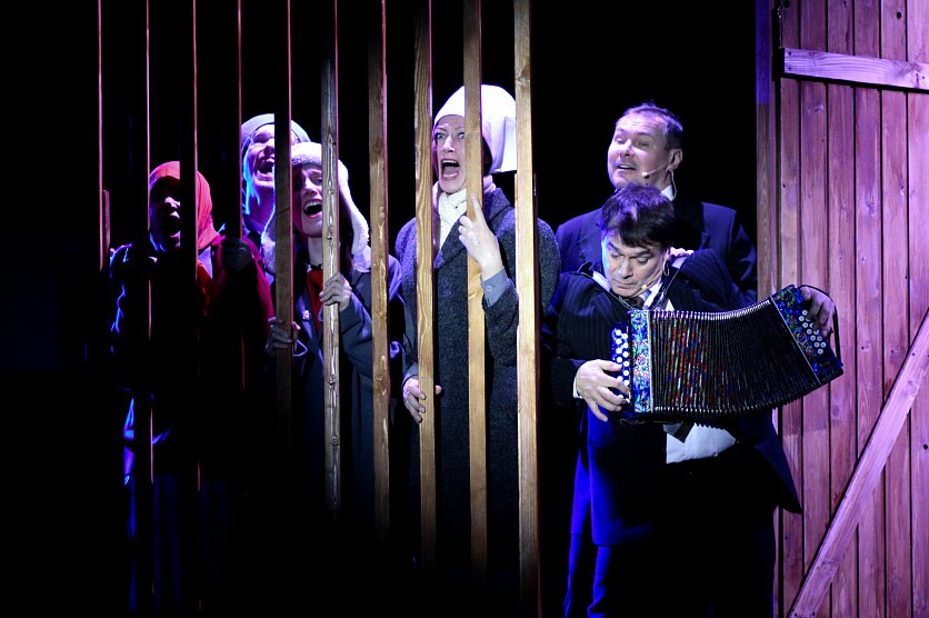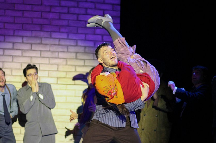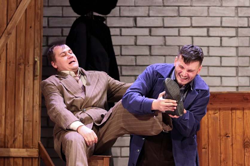 Губкин Новости Новости культуры Зощенко по-губкински: фоторепортаж с премьеры музыкальной комедии «Неудачный день» Зощенко по-губкински: фоторепортаж с премьеры музыкальной комедии «Неудачный день» Мария Полякова 10.12.2021 18:30 Культура 5052 Фото: Мария Полякова / Губкинский театр для детей и молодежи В Губкинском театре для детей и молодёжи вслед за недавно представленным премьерным спектаклем «Доходное место» по произведению Александра Островского увидела свет другая постановка – музыкальная комедия «Неудачный день» по одноименной пьесе советского драматурга Михаила Зощенко. В связи с капитальным ремонтом здания театра губкинские артисты показали театрализованную интерпретацию Зощенко на сцене Центра культурного развития «Строитель». Все требования Роспотребнадзора, к которым относится обязательная социальная дистанция и использование средств индивидуальной защиты, а также предоставление документов о состоянии здоровья или прохождения вакцинации от коронавирусной инфекции, соблюдены, значит можно начинать. Третий звонок прозвенел, тяжелые бархатные кулисы побежали в стороны… Перед зрителями развернулось действие в кооперативе с каламбурным называнием «Честные люди», где, на самом деле, работают сотрудники, противоположные этому понятию. Ночной сторож – воришка обыкновенный – решил взять с пищевого склада «самую малость» и этой «самой малостью» – «голубиной порцией», пока никто не видит, полакомиться. Но его более проницательные коллеги решили, что в такой благовидный момент грех не взять еще больше «детишкам на молочишко». Атмосферу классического советского киоска-склада создала главный художник театра Анна Плахова совместно с профессиональной командой специалистов творческих цехов и мастерских. Знаменитым на всю Россию Михаил Зощенко стал почти мгновенно. И неудивительно, что его рукописи популярны и по сей день. Секретом массового успеха писателя стал не только его сатирический талант: Зощенко – юморист, философ, продолжатель традиций русской классической литературы. В комедии с тонкой иронией высмеиваются такие человеческие пороки, как жадность, обман, лесть, хитрость, лицемерие. Пьеса была написана Михаилом Зощенко в 1934 году, но ее идея вечна. Через комедийный жанр мы говорим о проблемах, которые близки каждому из нас и которые раскрываются в забавных и нелепых образах и ситуациях, – рассказа о своей работе режиссер-постановщик спектакля, главный режиссер театра Ирина Суханова. Показы комедии продлятся до 18 декабря. Справка «Неудачный день» стал третьим и завершающим в 2021 году спектаклем федерального проекта «Культура малой Родины», инициированного партией «Единая Россия». Фоторепортаж: Мы в Telegram Вернуться к списку новостей Предложить новость