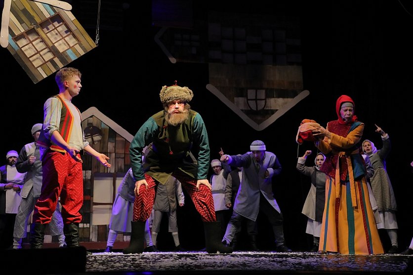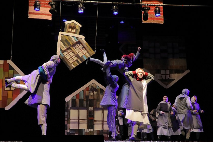 Губкин Новости Новости культуры В Губкине выступили артисты Новоуральского театра музыки, драмы и комедии В Губкине выступили артисты Новоуральского театра музыки, драмы и комедии Марина Некрасова 08.05.2024 18:33 Культура 1277 Фото: Валерий Воронов Они показали детский музыкальный спектакль «Серебряное копытце» – с оригинальной режиссурой, живым хором и балетом. В тур по Белгородской и Курской областям коллектив из Свердловской области отправился благодаря гранту конкурса «Культурная афиша», который проводит Благотворительный фонд Алишера Усманова «Искусство, наука и спорт». Поддержку гастролям оказала и компания «Металлоинвест». Где-то посреди суровой русской зимы, где деревенская детвора беззаботно играет в снежки, а широкая ярмарка танцует и поет, случилась эта чудесная история. Здесь встречаются два одиноких сердца: дед Кокованя и сиротка Дарёнка. Старый охотник приютил бедную девочку, вечерами игрушки мастерит и сказки сочиняет: про Огневушку-поскакушку да про волшебного козлика. «У него на левой передней ножке серебряное копытце. Где он этой ножкой топнет, там и появится драгоценный камень». В основе музыкального спектакля – сказы из сборника Бажова «Малахитовая шкатулка». Уральский фольклор, словно горные самоцветы, на сцене оживает множеством переливов и перезвонов. В постановке почти нет диалогов – артисты со зрителем говорят через песни, танцы и звуки. Ведь у русской деревни есть не только своя душа, но и свой голос. Он слышится то скрипом половиц, то свистом метлы, то мяуканьем дворовых кошек. Весь спектакль на том и построен – мы больше показываем, нежели рассказываем. То есть его визуальная эстетика – это летающие птицы, сказка о козлике, – комментирует артист драмы Новоуральского театра музыки, драмы и комедии Евгений Недокушев. – А артисты балета, хора подают всю эту ситуацию музыкально. Музыкальное решение – ещё одна изюминка спектакля. Хор в основном поёт акапельно. А инструментальное трио рождает фольклорные мотивы с помощью кахона, трещоток, бубна, флейты и совсем неожиданных предметов. Кастрюля, стиральная доска, ножка от стола, ещё ведро строительное на 16 литров. Я приходил в строительные магазины и ходил с барабанной палочкой, слушал, чтобы был нужный звук, – рассказал о подборе «инструментов» артист-вокалист Новоуральского театра музыки, драмы и комедии Игорь Филиппов. У постановки – восемь номинаций на главную театральную премию страны «Золотая маска». Одна из них – за роль Дарёнки. Анна Костарева играет её бессменно с самой премьеры – уже пять лет – и верит, что это неслучайно. Павел Петрович Бажов, по сказам которого написана пьеса, является моим земляком. Он родился в маленьком городке Сысерть в Свердловской области, как и я спустя 100 лет, – говорит Анна Костарева. – Я о номинации своей узнала в день и час рождения. Вот такие совпадения бывают. У Новоуральского театра – уникальная история. Построенный в 50-е годы прошлого века для жителей закрытого «атомного» городка, он стал широко известен ценителям искусства по всей стране – труппа часто гастролирует. В творческий вояж по городам, где живут работники Металлоинвеста, театр вывез больше 40 человек. Не может театр жить без гастролей. Это огромное счастье и для артистов, и для технических цехов. Это развитие. И, конечно, самое главное – это новый 