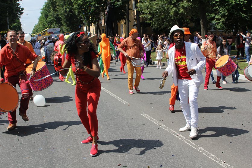 Губкин Новости Новости культуры Фестиваль «АРТ-ОКНО ON AIR» в Губкине: потрясающий и удивительный. Часть I (видео и фото). Фестиваль «АРТ-ОКНО ON AIR» в Губкине: потрясающий и удивительный. Часть I (видео и фото). Лариса Ульяненко 16.07.2017 09:59 Культура 5261 Фото: Танцовщицы группы "Маракута" буквально зажгли город, фото Ларисы Ульяненко Суббота. 11 утра. Губкин просыпается после вчерашнего звёздного концерта. И вдруг, тишину вспарывает барабанная дробь. И тут же к ней присоединяются звуки маракасов. И ещё каких-то этно-инструментов. Это группа «Маракута» извещает всех: праздник начинается, выходите, присоединяйтесь, радуйтесь вместе с нами! «Цветные люди» из театра «Color People», питерские «беспредельщики», артисты из театров «Две обезьяны», «Молоко», «Беби-ленда», «Эскизы» в пространстве» и других выходят на центральную площадь. А с неё весь этот яркий карнавал перетекает на городские улицы. «Цветные люди» из театра «Color People» Фото: Лариса Ульяненко Поначалу зрителей было не так много, но чем дальше двигалось шествие, там больше их становилось. Причём, губкинцы не хотели быть статичными наблюдателями. Они вливались в эту музыкальную реку, танцевали, фотографировались с яркими персонажами. Даже избалованные артистами и всевозможными событиями журналисты, они тоже не были статистами. Да что пишущая и снимающая братия! Улыбались суровые полицейские! Люди распахивали окна, выходили на балконы и …тоже улыбались. И махали руками, посылали воздушные поцелуи. Мальчишки не отходили от огромного, метра в четыре ростом, ходулиста. Как заворожённые, они «хвостиком» шли за ним, впереди него (пятясь задом). Люди открывали окна навстречу празднику, снимали его на мобильники и планшеты Фото: Лариса Ульяненко И вот шествие выходит на Комсомольский проспект. Тут уже расцветают бабушки на остановках. И тоже машут руками, смеются. «Надо же, сколько прожила, такого не видела!» – восклицает одна. Даже бабушки не остались равнодушны к празднику: махали и улыбались Фото: Лариса Ульяненко И вот уже нет лишь артистичной колонны. Здесь все, и наши коллективы, и приезжие артисты, и простые жители, и те, кто специально приехал в наш город на уличный фестиваль. По проспекту движется большущая пляшущая и поющая (спасибо скороднянцам!) «змея». Многие удивлялись: как же он не падает со своих ходуль? Фото: Лариса Ульяненко То и дело слышится «Круто!», «Ничего себе!», «Это что-то нереальное!». Такого наш город ещё не видел! Фото: Лариса Ульяненко У входа в парк культуры всех встречают музыканты джаз-бэнд из Белгородской филармонии и огромная надпись, напоминающая, по какому случаю сегодняшний фестиваль «В честь 50-летия Лебединского ГОКа». Многие останавливаются, слушают джаз, изучают карту площадок фестиваля. Чуть входим в парк, нас встречают живые скульптуры шахтёров и горняков. В их роли выступают мускулисто-бронзовые парни из Харькова. Успеваем перекинутся парочкой слов. Признаются, что Губкин – приятный городок, очень опрятный и нарядный. Их приятно удивило, что у нас проходят события, без преувеличения, столичного масштаба. Парни из Харькова были нарасхват: и взрослые, и дети, хотели сфотографироваться с живыми скульптурами Фото: Лариса Ульяненко В парке народ получает небольшую передышку. Можно покататься на лодочках или визитной карточке Губкина – шхуне с нарядным капитаном. М
