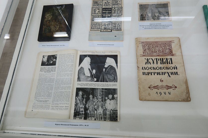 Губкин Новости Новости Губкинским старшеклассникам рассказали о том, каково было православным на Белгородчине при СССР Губкинским старшеклассникам рассказали о том, каково было православным на Белгородчине при СССР Лариса Ульяненко 19.10.2018 11:51 В Губкине и области 4082 Фото: Девятиклассники лицея №5 в краеведческом музее, фото Ларисы Ульяненко. На чёрно-белой открытке люди рьяно пытаются свалить крест с купола храма. Совсем молодые ребята, лишь немного старше тех, кто смотрит на них сквозь стекло. Молодёжь 1930-х и молодёжь 2018. Первые страстно мечтали увидеть светлое будущее, коммунизм, который строили. Вторым интересно узнать о том, что происходило в нашей стране, и нашем крае почти век назад. И 17 октября две эпохи пересеклись. Открытка 30-х годов Фото: Лариса Ульяненко. «Мы наш, мы новый мир построим» Случилось это в губкинском краеведческом музее. К 90-летию известного священника и поэта нашей епархии Леонида Гончарова сотрудники музея решили устроить встречу школьников и духовенства. Нет, не с самим отцом Леонидом, возраст, знаете ли почтенный, но с его духовным чадом, о. Анатолием. Однако жизнь внесла коррективы: из-за отпевания батюшка не смог приехать. Жаль, конечно, у девятиклассников лицея №5 наверняка нашлось бы о чём спросить. Однако сказать, что встреча не состоялась нельзя. Она случилась, встреча с историей. Через личность отца Леонида, его семьи, ребята услышали и увидели немало интересного. Лицеисты 9-Б в музее Фото: Лариса Ульяненко. Началось всё с небольшой – всего 25 предметов – экспозиции, посвящённой Леониду Гончарову и церковной тематике. Под стеклом – настоящие раритеты. В том числе, та самая монохромная открытка 30 годов. «Комсомольцы срывают крест на усиление постройки тракторной колонны и улучшение быта пролетарского студенчества», так называется почтовая карточка той эпохи. Удивительно, но в то богоборческое время великолепный храм в Истобном, где с 1961 года более 50 лет окормлял паству о. Леонид, уцелел. — Старожилы вспоминали, что церковь хотели взорвать, но человек 10-15 прихожан закрылись там и не пускали внутрь никого, – рассказывали ребятам сотрудники музея. – Да, потом защитников храма Георгия Победоносцы арестовали, и они просто исчезли (был человек и нет человека), но дом Божий спасли. Правда, службы несколько лет не велись. «Советы» варварски использовали церковь как зернохранилище (спасибо, не как коровник!). А потом пришли фашисты и …открыли храм. — Надеялись, люди в благодарность за это станут молиться о победе русского оружия, но, конечно, ничего такого не случилось. Истобнянцы и жители окрестных деревень просили Господа о другом: чтобы помог одолеть врага, чтобы земляки вернулись живыми, – говорят музейщики. К слову, с 1942 года и по сей день храм в Истобном, один из немногих не только в Губкинской епархии, но и на Белгородчине, который больше не закрывался, оставаясь действующим. Во время войны Сталин ненадолго дал православным послабление, даже журналы РПЦ выпускала. Фото: Лариса Ульяненко. На свой страх и риск Столетие храма пришлось на конец правления Сталина. Разумеется, ни о каких торжествах не могло быть и речи! Думали ли жители Истобного в 19 веке, что церковь, на которую они собирали деньги всем миром, что придут злые времена… В 1840-х годах Истобное было многолюдным – более трёх тысяч душ! Так что и храм