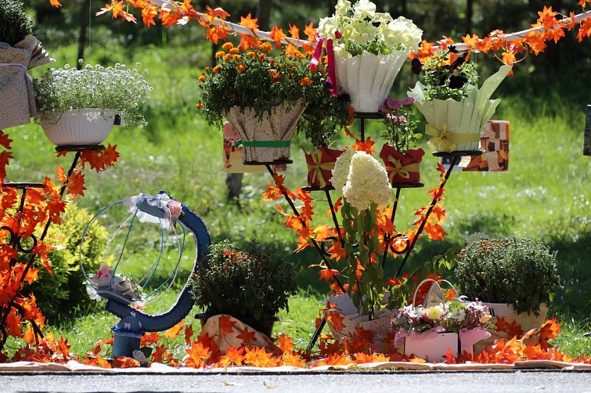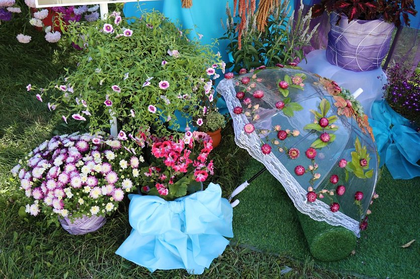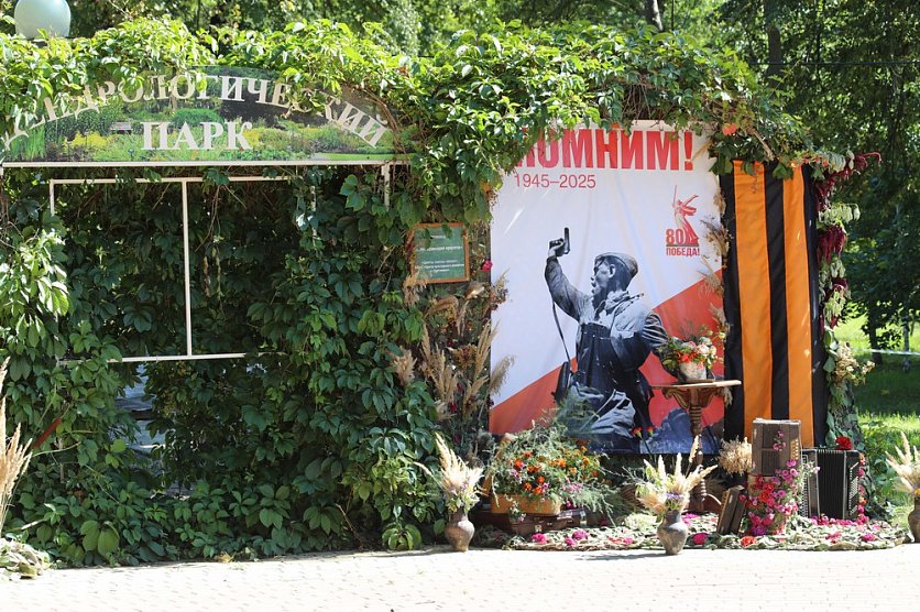 Губкин Новости Фоторепортаж Цветы памяти. Ежегодную флористическую выставку в Губкине посвятили 80-летию Победы Цветы памяти. Ежегодную флористическую выставку в Губкине посвятили 80-летию Победы Евгения Шехирева 01.09.2025 13:57 Фоторепортаж 807 Фото: Александр Белашов В этом году большинство участников выставки цветов «Губкин — город-сад» свои композиции посвятили подвигу народа в борьбе с немецко-фашистскими захватчиками. Среди корзин и ваз с разнообразными цветами разместили каски, фляги, патронташи, старенькие патефоны, элементы униформы и снимки воевавших земляков. Чтобы воссоздать атмосферу военного времени, флористы использовали соответствующие атрибуты Фото: Александр Белашов Цвет храбрости На тематической аллее тон задавала экспозиция с изображением скульптуры «Родина-мать зовёт!» с красной звездой из цветов у подножия. На её разработку у Лебединского ГОКа ушло три недели. Инсталляция Лебединского ГОКа первой встречала гостей выставки. Механик по ремонту и обслуживанию электрооборудования обогатительной фабрики Максим Черемисин вместе с женой и дочками высоко оценил красоту композиций, в том числе — монументальность лебединской Фото: Александр Белашов Акцент сделали на красном цвете, используя алые гвоздики, рассказала флорист Валентина Ламанова, помогавшая лебединцам с оформлением. Помимо гвоздик использовали многолетники: петунии, колеусы, хризантемы, барбарис. Здесь тоже вложили особый смысл: как эти растения зацветают из года в год, так и память о подвиге русских солдат лебединцы передают из поколения в поколение. — Выставка цветов — это возможность для трудовых коллективов внести свой вклад в украшение и создание позитивной атмосферы города. Мы отдали предпочтение многолетним растениям, чтобы в дальнейшем можно было пересадить их в клумбы. Тогда цветы продолжат радовать своей красотой, — отметил директор по социальным вопросам Лебединского ГОКа Владимир Евдокимов. — И, конечно, в год 80-летия Победы и Защитника Отечества мы не могли обойти стороной тему подвига народа. Композицию после выставки отдадут одной из школ. Заботясь о растениях, дети будут регулярно вспоминать о подвиге предков Фото: Александр Белашов Фантазии на любую тему Впечатляли и арт-объекты другой тематики. Гостей встречали сказочные персонажи и фигурки из цветов, изящные букеты в вазах и зонтах. Стенды сельских территорий стали уголками подворий с обилием овощей и фруктов. Среди композиций можно было встретить фантазии на тему экогорода, например, пышные сады на крышах домов Фото: Александр Белашов Много лет хожу на выставку — люблю эту городскую традицию, — рассказывает Людмила Логачева, которая пришла в компании дочери и внука. — Особенно приятно, что мероприятие перенесли в парк: в жару можно спокойно прогуливаться по тенистым аллеям и любоваться красотой. Расцвёл не только парк, но и пруд: на воде оформили несколько замысловатых композиций. Зрителей особенно порадовал вернувшийся после реконструкции парусник «Святой Николай» (губкинцы по привычке называют его ботиком Петра I). Правда, покататься не получится: кораблик теперь будет радовать жителей как плавучая клумба. Возвращение на пруд «ботика Петра I», пусть и в виде плавучей клумбы, обрадовало губкинцев Фото: Александр Белашов Цифры 89 участников представили свои к
