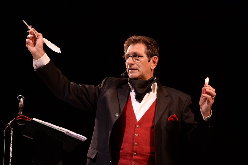 Губкин Новости Новости общества Мистика без мистики: Евгений Князев рассказал в Губкине оригинальную историю трёх карт Мистика без мистики: Евгений Князев рассказал в Губкине оригинальную историю трёх карт Елена Светлая 04.09.2018 11:58 Общество 5221 Фото: Сцена из спектакля. Фото Александра Белашова. 2 сентября в ЦКР «Форум» актёр театра имени Вахтангова Евгений Князев представил моноспектакль по повести Пушкина «Пиковая дама». Спектакль проходил в рамках сотрудничества фестиваля искусств АРТ-ОКНО с федеральной программой «Большие гастроли», которая знакомит зрителей с лучшими театральными проектами из разных регионов России и способствует развитию культурного диалога между регионами страны. Понятно, что Пушкин – это Пушкин, «Пиковая дама» - это «Пиковая дама», Евгений Князев – это Евгений Князев. Тем не менее, до начала действа можно было услышать и сомнения: «Интересно, конечно, что мы сегодня увидим. Но не верится, будто здесь можно сказать нечто оригинальное, ведь по этому произведению сделано столько экранизаций, спектаклей, опера…», - поделилась женщина, не захотевшая, впрочем, представиться. Зато Владимир и Ирина Харченко не сомневались, что постановка окажется очень интересной: — Художественный фильм — это одно, а спектакль – совсем другое. Когда сам читаешь произведение — многое ускользает. Поэтому мы обязательно увидим что-то новое, чего не было в фильме. Ведь каждый актёр всегда имеет какое-то своё вИдение. Тем более нам очень нравится Князев, - рассказали супруги. Супруги Харченко: «Мы постоянно ходим в театр и на другие мероприятия, и получаем от этого огромное удовольствие. В молодости у нас были другие дела. А теперь на те же самые вещи смотришь немного по-другому, чувствуешь всей душой. Поэтому для нас это даже больше чем отдых». Фото Елены Светлой. Надежда Гончарова, до декретного отпуска работавшая на Лебединском ГОКе, также шла на спектакль с предвкушением чего-то необычного, ожидая новых эмоций и впечатлений. Надежда Гончарова. Фото Елены Светлой. Судьба, а не мистика «Пиковая дама» традиционно считается одним из самых мистических произведений великого русского поэта. Но Евгений Князев полагает, что в повести есть юмор, есть глубокий смысл, а вот той самой мистики – ни на грош, о чём он не раз говорил в интервью различным изданиям, повторил и нам: — В произведении нет никакой мистификации, за исключением того, что старуха явилась во сне к Германну (кстати, если кто подзабыл – это не то имя, не то фамилия героя, о чём до сих пор ведутся споры, и в пушкинском тексте оканчивается на удвоенную «н», - прим. авт.). Ну, так и нам порой что-то снится... Здесь маленький человек решил вступить с судьбой в спор, решил, будто он настолько крут, что может победить судьбу и сказать ей: «Я буду у тебя выигрывать!». И проиграл. Потому что с судьбой играть не надо. Надо жить той жизнью, которая тебе дана. Германн изначально всё делал правильно, он считал: «Я не в состоянии жертвовать необходимым в надежде приобрести излишнее». А потом захотел получить излишнее. И проиграл всё. Но разве так не бывает в жизни? Направо и налево у каждого человека. Нет ни вечного богатства, ни вечной бедности. Сегодня так, - а завтра, глядишь, всё по-другому пошло… Ну что ж, кому и рассуждать о мистике (а равно об её отсутствии), как не артисту, сыгравшему предсказате