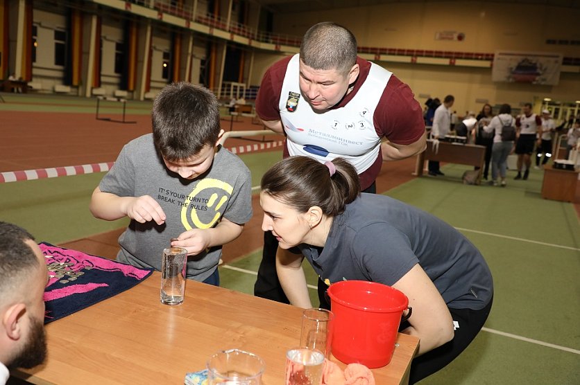 Губкин Новости Новости спорта Форт Боярд по-лебедински: в Губкине прошёл спортивно-развлекательный квест «СемьЯ» Форт Боярд по-лебедински: в Губкине прошёл спортивно-развлекательный квест «СемьЯ» Евгения Шехирева 05.03.2023 17:48 Спорт 1549 Фото: Александр Белашов Вслепую «щупать» мадагаскарских тараканов или отличать кофе от горчицы, наполнять стакан монетами — с такими необычными испытаниями столкнулись участники квеста, напоминающего известное телешоу. Контролёр управления технического контроля Лебединского ГОКа Светлана Дорошева таких насекомых, как палочники, видела только на картинках. Но в ходе спортивно-развлекательного квеста «СемьЯ», который накануне Дня защитника Отечества провёл в спорткомплексе «Горняк» Совет молодёжи, увидела их вживую. — Когда я наощупь начала искать в ящике игральный кубик, почувствовала, как что-то легонько царапает ладонь. Стало страшновато: что же там? — делится впечатлениями Светлана. — Поначалу думала, что кузнечики. Когда сняла повязку с глаз, увидела палочников. Испытала сразу и шок, и облегчение: думала, будет что-то похлеще. Испытание «Самая храбрая мама» Дорошева выдержала. Участницам пришлось наугад выбрать контейнер (во втором ждали мадагаскарские тараканы) и найти подсказку для прохождения финального задания. Вместе к победе Преодолевать себя ради победы пришлось и их мужьям, и детям — в квесте принимали участие семейные команды. Папам выпало испытание на ловкость: стоя в кругу, ловить в пустую корзину теннисные мячи, которые с расстояния пяти метров подают домочадцы. Ловить в пустую корзину теннисные мячи оказалось не так просто Фото: Александр Белашов — Это сложно, потому что радиус движения маленький, за круг заступать нельзя. Тут важно координировать действия с близкими, — отмечает один из участников, машинист электровоза УЖДТ Евгений Бредихин. Были и совместные этапы. Например, семьи «змейкой» обходили конусы с мячом: папы — с футбольным, мамы — с баскетбольным, а детишки проводили теннисный «снаряд» с помощью клюшки. А как вам задачка сообща собрать из кубиков фотографию БелАЗа, экскаватора или другой техники? На этапе ГТО участники выполняли наклон с тумбы для проверки гибкости, прыгали в длину и пробегали 30 метров на время. Фото: Александр Белашов Ароматы и монеты Самые необычные задания ждали юных конкурсантов. На этапе «Нюхач» ребята определяли, что находится в десяти картонных стаканчиках только благодаря обонянию! Девчонки с задачкой справлялись лучше. К примеру, Майя Девиченко не смогла распознать лишь горчицу. А Веронике Дорошевой чуть-чуть не хватило до идеального результата: перепутала кока-колу с пепси. Зато одна из немногих угадала колбасу. — Для меня почти все запахи были яркие и понятные: зубная паста, кофе, апельсин, шоколад — они все разные, — говорит Вероника. — Легко было определить, только с газировкой запуталась. Также дети проверяли глазомер и чувство баланса, бросая двухрублёвые монетки в стакан с водой. Главное условие — поднять уровень жидкости как можно выше, но не разлить! Взрослым разрешили подсказывать. Кому-то из ребят это помогало, другим — наоборот Фото: Александр Белашов — Надо было всё-таки папу слушать, — рассуждает Даша Шеховцова. — Он сказал, что уже хватит, а мама предложила ещё добавить. Послушала маму — и вода перелилась! Сделат