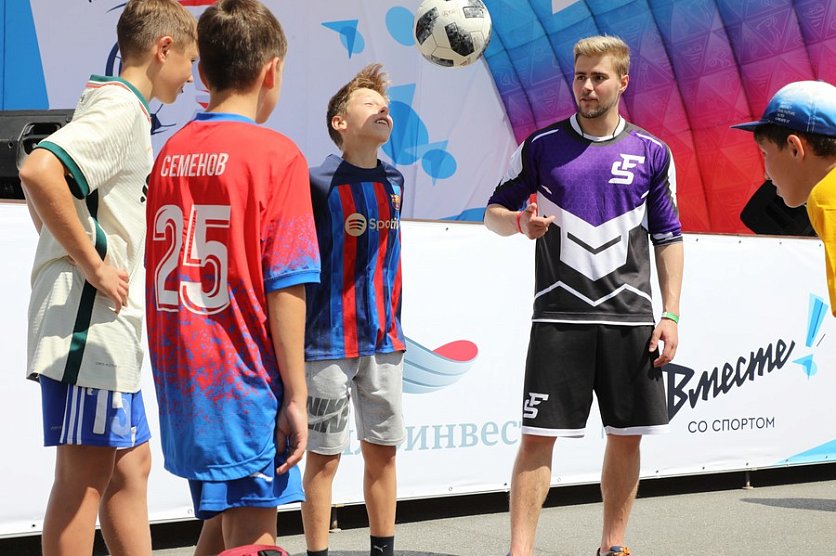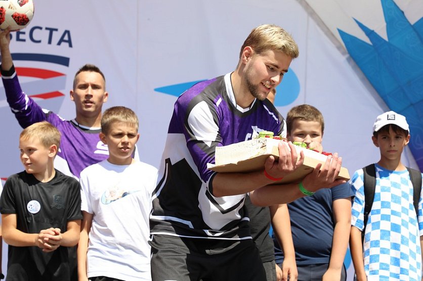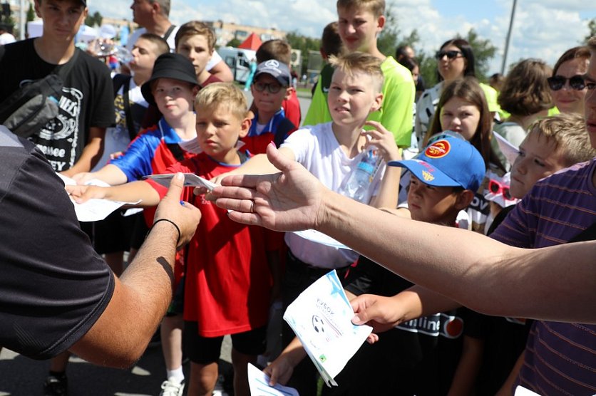 Губкин Новости Новости спорта В Губкине стартовал Летний детский турнир по дворовому футболу «Кубок Металлоинвеста — 2023» В Губкине стартовал Летний детский турнир по дворовому футболу «Кубок Металлоинвеста — 2023» Анна Шишкина 31.07.2023 09:50 Спорт 1264 Фото: Александр Белашов На соревнования заявлены 33 команды, из них 3 девичьих. Церемония открытия турнира состоялась 30 июля в парке «Чудо-Юдо-Град». И хотя матчей в этот день не было, футбол был, и много — сразу на нескольких площадках шли увлекательные тематические состязания. Вы когда-нибудь пробовали побегать, надев на ноги половинки баскетбольных мячей? А погонять теннисный мячик клюшкой? И всё — на скорость! А уж соревнования в футбольных «фишках» — вне конкуренции. Много желающих было забить мяч в надувные ворота-мишени. Ажиотаж и на площадке, где играют в панна футбол: от желающих сразится один на один тоже нет отбоя. Благо поединки короткие, и показать свою технику есть шанс у многих. Чемпион по набиванию мяча четырнадцатилетний Илья Филатов Фото: Александр Белашов Или чеканка мяча. Рекорд дня: 1030 раз! Чемпион по набиванию мяча четырнадцатилетний Илья Филатов после выступление признался, что даже не считал сколько раз подбросил мяч. Парень увлекается футболом с пяти лет, сейчас занимается в спортшколе №3, а на турнире представляет команду «Рефлекс». Тренировки на выносливость уважает, но больше всего любит работать именно с мячом. Илья рассказал, что для него этот вид спорта открыл папа. Как и для многих других юных спортсменов. В этом у отцов и детей — полное взаимопонимание! Вот и папа десятилетнего Владислава из команды «Львы» — тому подтверждение: Разговаривая с юными спортсменами, услышали не одну историю, где проводником в мир футбола стал папа. В этом виде у отцов и детей — полное взаимопонимание! Вот и папа 10-летнего Владислава из команды «Львы» — тому подтверждение: Я увлекаюсь футболом, сам играл за школу, участвовал в городских соревнованиях. Сын этот интерес перенял: когда подрос решил заниматься футболом, — рассказывает Василий Меташев, — Второй год тренируется, ему нравится. Мы с супругой поддерживаем интерес сына, ездим на соревнования. Хороший вид спорта: активный, подвижный, формирует дисциплину, ответственность перед командой, развивает взаимодействие в коллективе, с другими людьми. Все важные навыки, которые нужны в жизни и должны прививаться с детства. Я — за футбол! Пока спортсмены показывали своё умение на спортивных площадках, малыши вместе с мамами участвовали в мастер-классах по аквагриму, поделкам из бумаги или в украшении футболок. Например, Ольга Башкатова вместе с 11-летним племянником Ярославом Селивёрстовым расписывала трикотаж, пока её 14-тилетний сын Владислав под подбадривающие комментарии отца показывал мастерство в чеканке. Ольга Башкатова с племянником Ярославом Фото: Александр Белашов Мы всей семьёй пришли поддержать сына, он во всех конкурсах участвует — рассказывает Ольга. — Обязательно будем ходить на матчи — мы ярые болельщики! Конечно, были и почётные гости, поздравления, напутствия и подарки. Например, исполняющий обязанности директора по социальным вопросам Лебединского ГОКа Андрей Замула и замглавы администрации Губкинского городского округа по социальному развитию Наталья Фарафонова передали инвентарь для проведения с